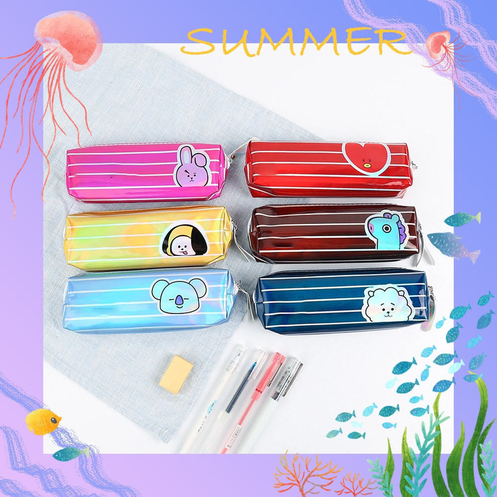 Cod Bts Bt21 Perlengkapan Sekolah Laser Ritsleting Tas Pensil