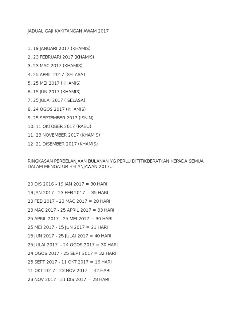 Dalila In The House Jadual Pembayaran Gaji Penjawat Awam 2017