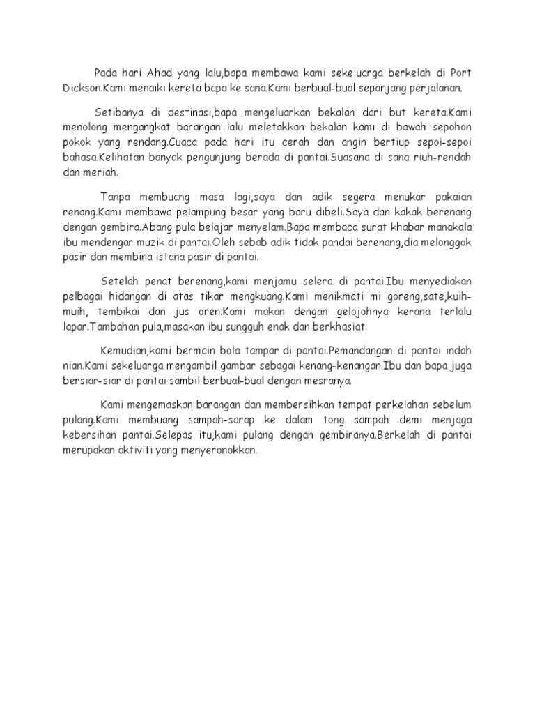 Sudut Bm Cikgu Tan Contoh Karangan 10 Berkelah Di Pantai