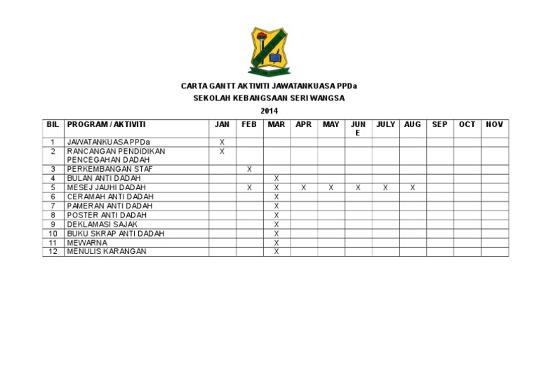 Carta Gantt Aktiviti Anti Dadah