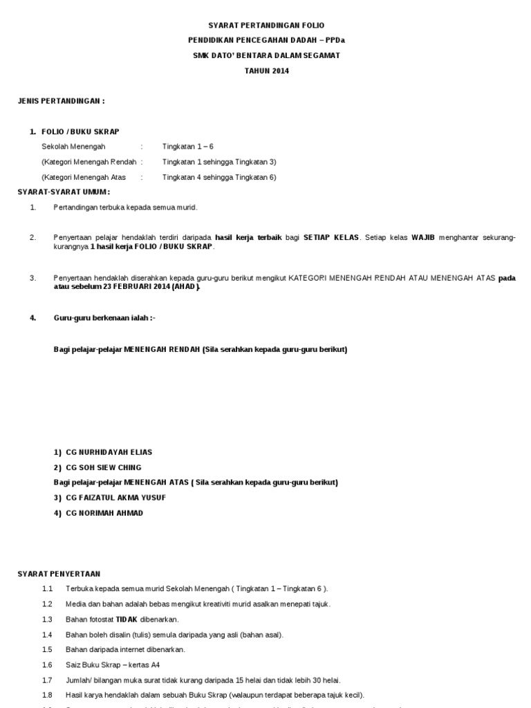 Syarat Pertandingan Folio Anti Dadah
