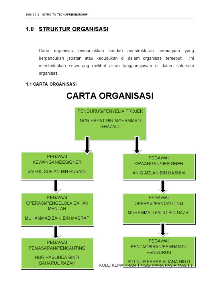 Merangka Struktur Organisasi Perniagaan Pok Nik Deen