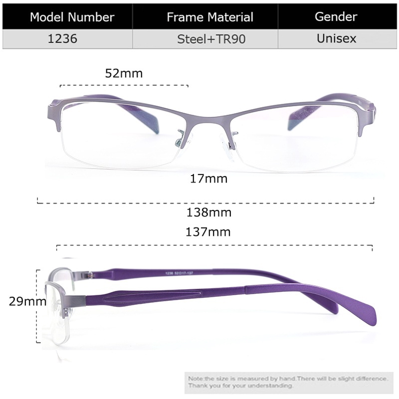Fashion Classic Setengah Bingkai Logam Rimmed Plain Ungu Len Frame