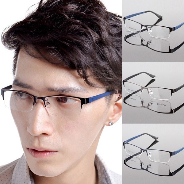 Kacamata Frame Setengah Bahan Metal Lensa Flat Gaya Bisniscasual