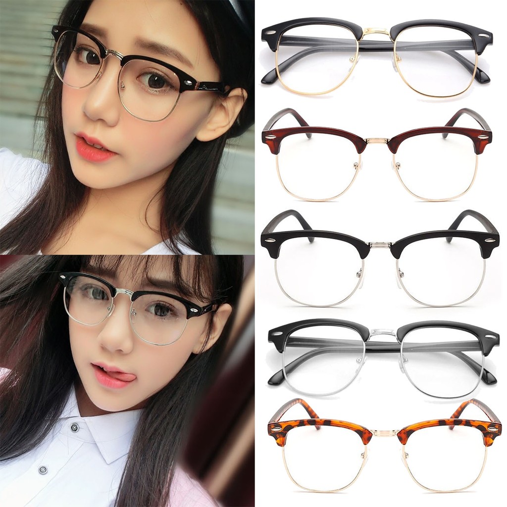 Kacamata Bingkai Setengah Lingkar Metal Lensa Bening Shopee