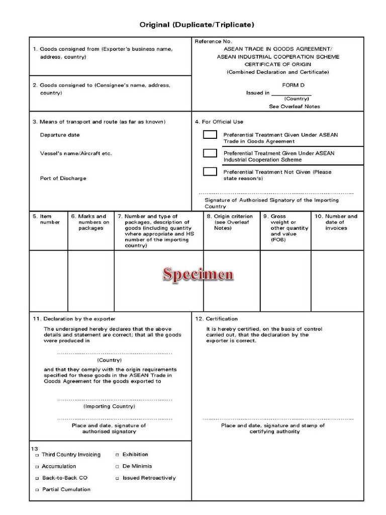 Certificate Of Origin Form D Malaysia