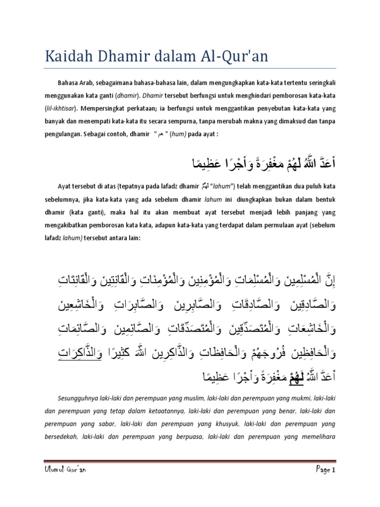 Contoh Ayat Kata Ganti Nama Dalam Bahasa Arab