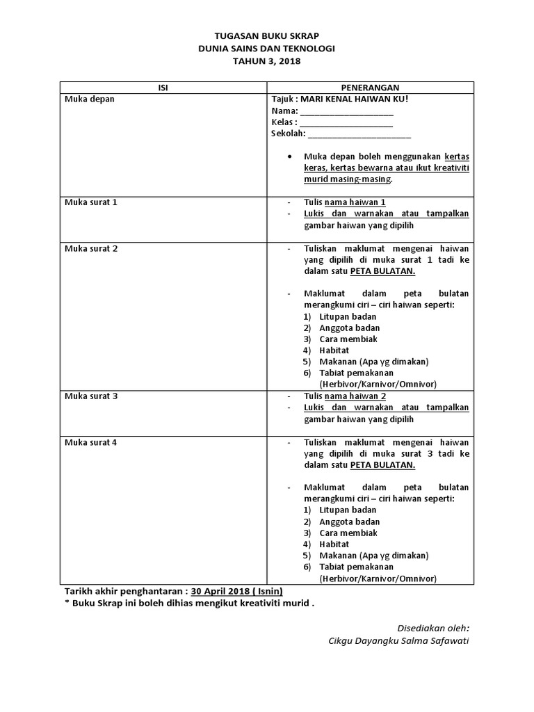 Contoh Muka Surat Depan Buku Skrap