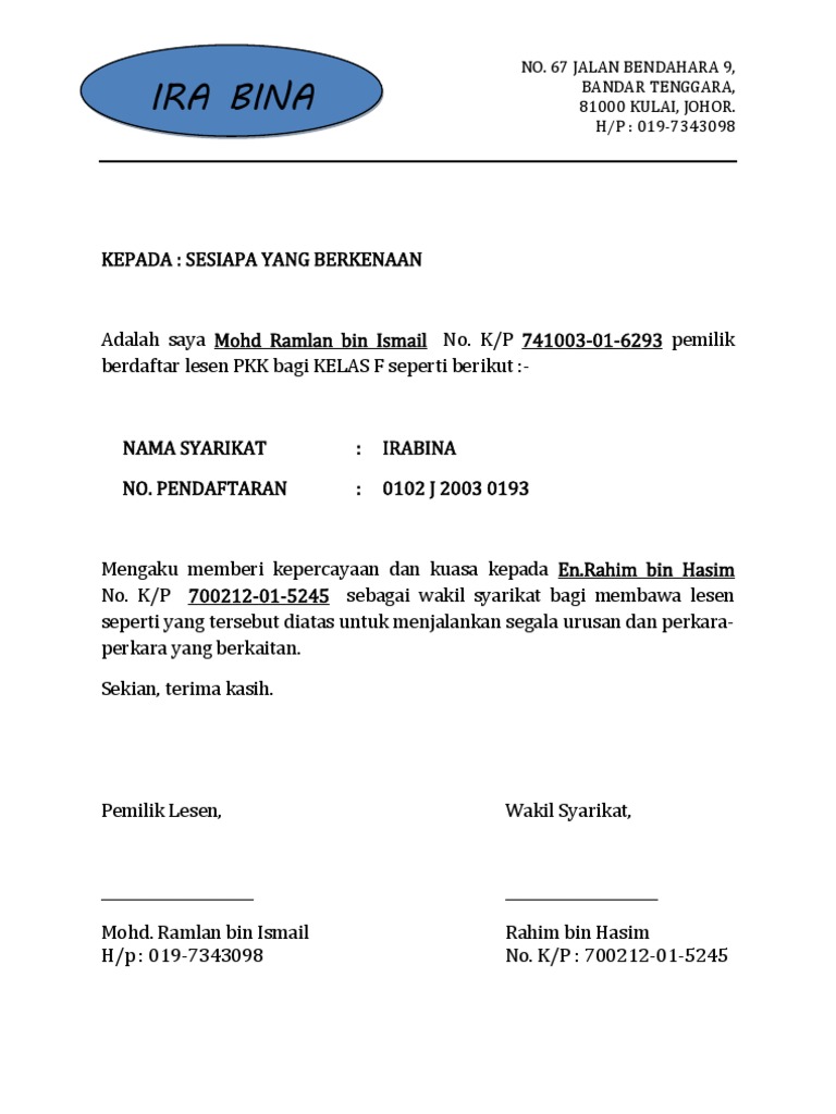 Contoh Surat Kepada Sesiapa Yang Berkenaan