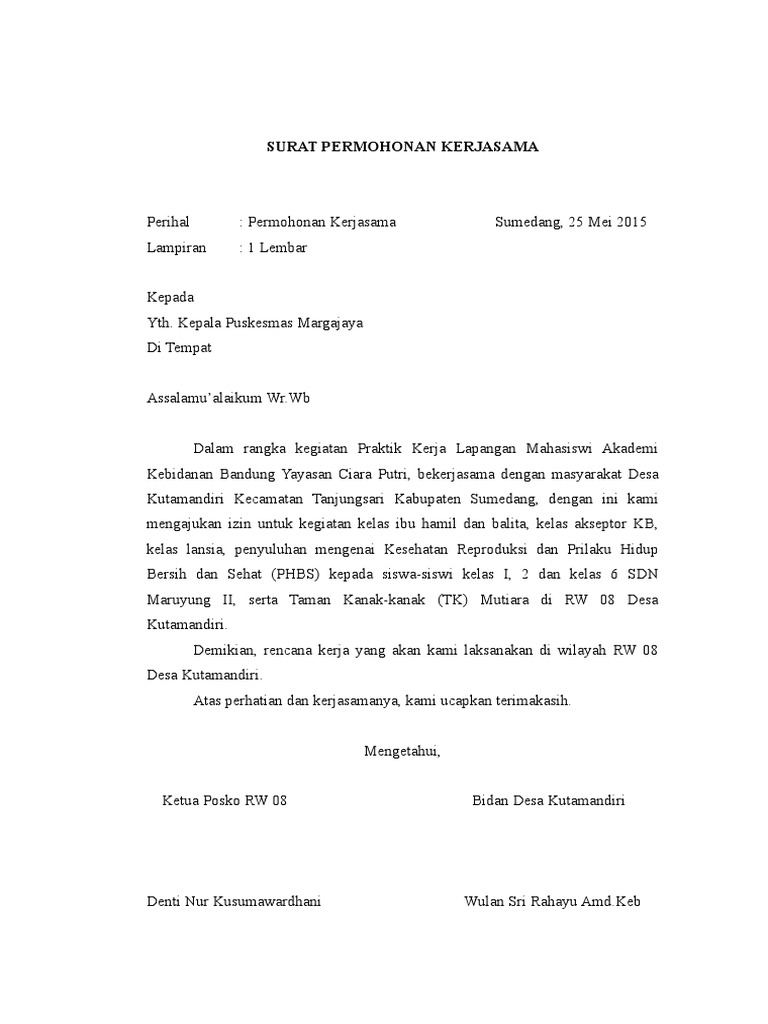 Contoh Surat Permohonan Kerjasama Dengan Puskesmas