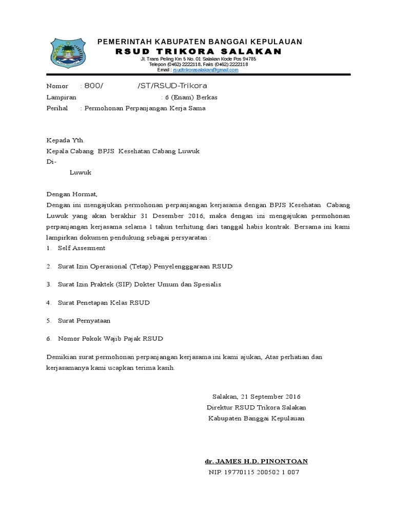 Surat Permohonan Perpanjangan Kerja Sama Rsud Trikora Bpjs