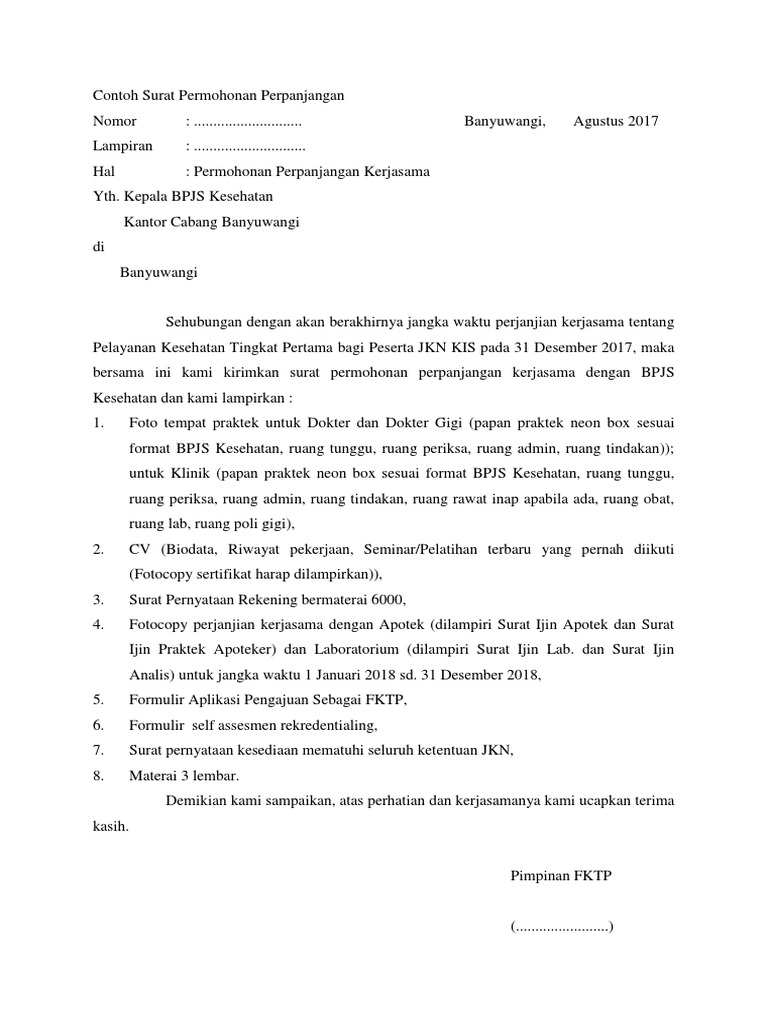Contoh Surat Permohonan Perpanjangan Kerjasama Dengan Bpjs Kesehatan