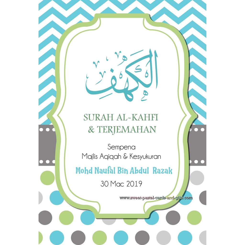 1 2 Buku Surah Al Kahfi Door Gift Majlis Aqiqah Ikut Design Kad