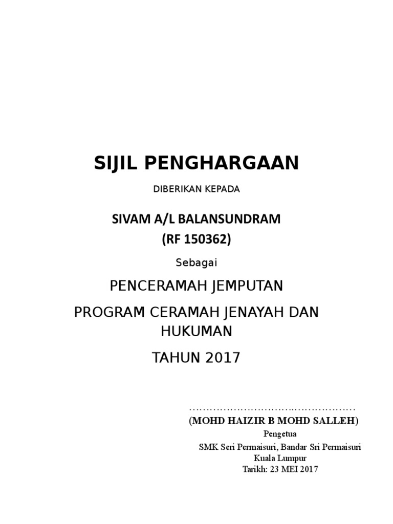 Contoh Sijil Penghargaan Dan Boleh Diedit Projects To Try