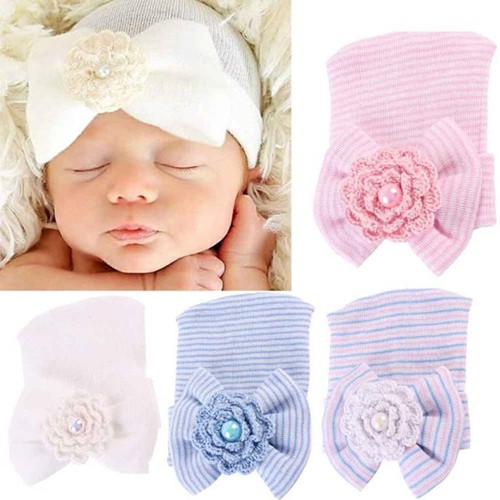 Topi Anak Bayi Perempuan Baru Lahir Dengan Pita Lucu Untuk Hadiah