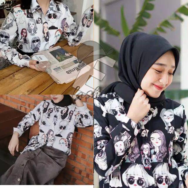 Cod Bayar Di Tempat Baju Kemeja Wanita Oversize Motif Kartun