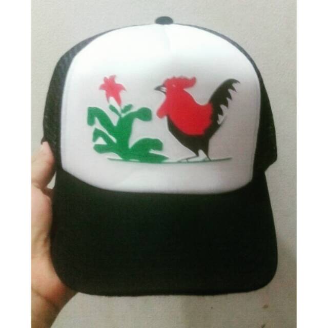 Topi Trucker Ayam Jago Hitam Putih Shopee Indonesia