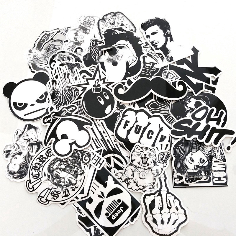50pcs Stiker Mobil Motif Kartun Graffiti Jdm Warna Hitam Putih